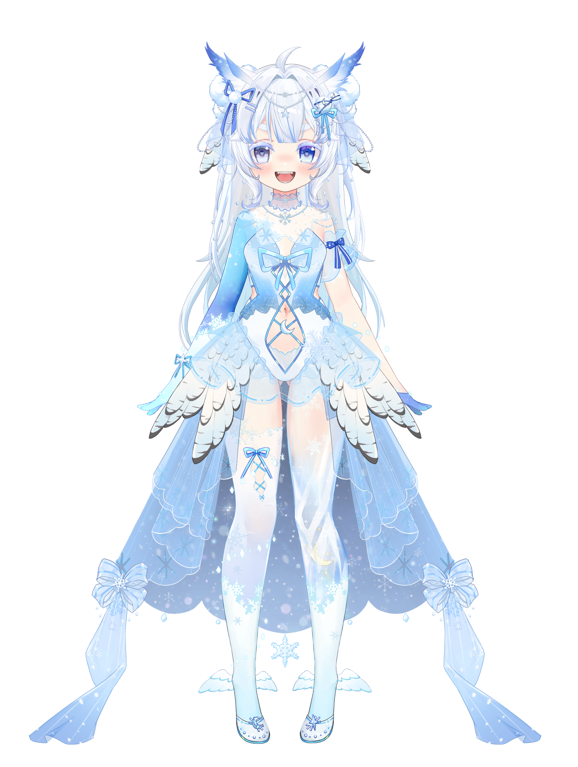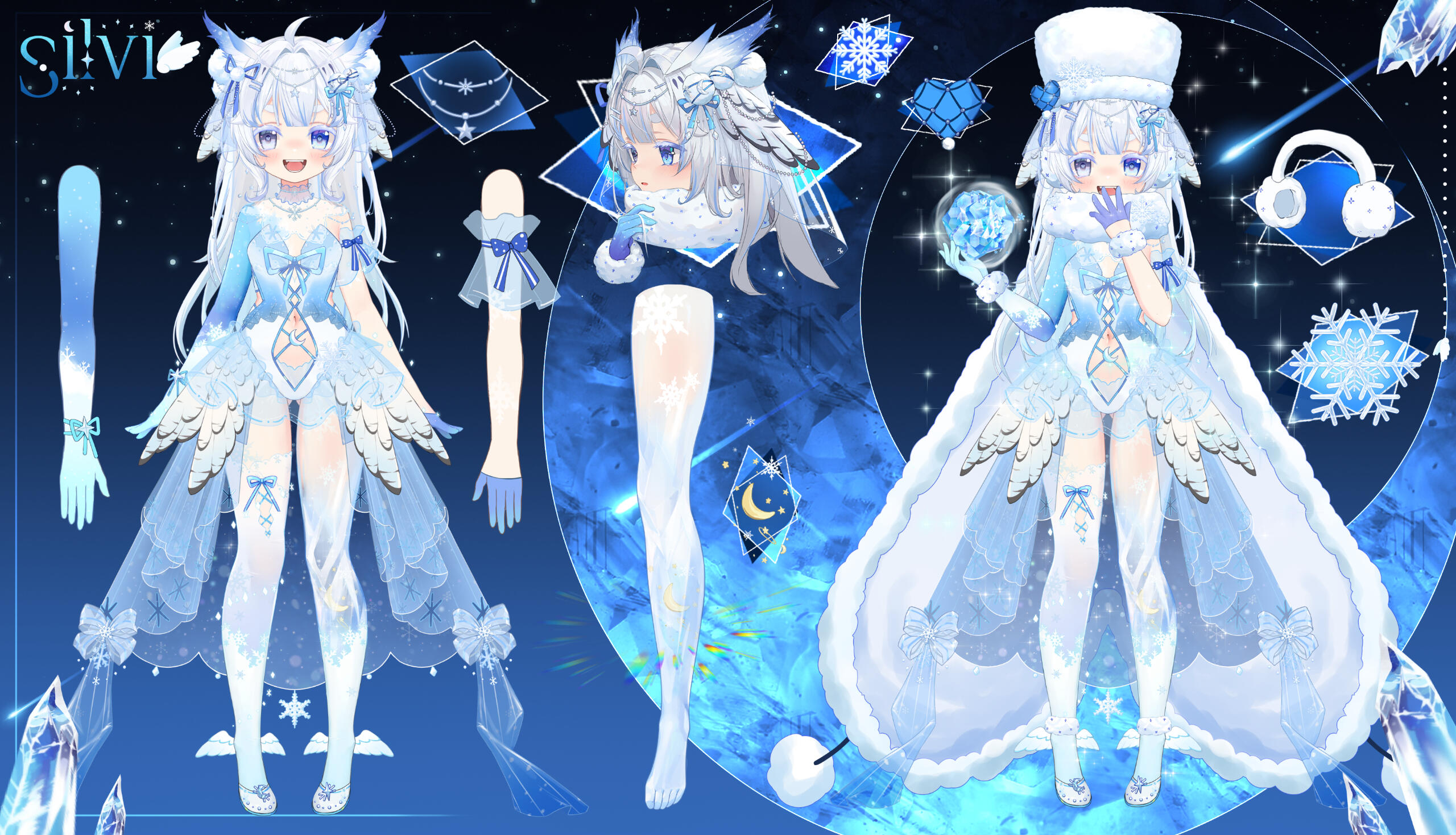 Representation of Naivety, Childhood innocence, the protection of being young and ignorant to the world's cruelties.Silvi is an immortal snowy owl girl who protects the northern forest. She lives in the hollowed out hole of a tree and looks after the forest critters. She is isolated from human society and the humans stay away from the forest she lives in, as it is said to be magical and is therefore something to be feared. One day, Silvi was patrolling the forest when she came across a human boy. She had never seen a human this close up before and spent some time observing him. As the days went on he started to look cold and was clearly lost. Silvi decided she would help the boy and the two became fast friends. As they got to know each other, Silvi gradually began to feel something for this human boy, having never experienced the company of someone other than the forest animals. They travelled together over the course of some days to the edge of the forest, where the human would be able to find his own way home. Silvi couldn't go with the boy as he was a human, and she was bound to the forest as its guardian. The two were parted, never to meet again. Silvi became so saddened by this loss that she fell asleep in her tree hollow for 600 years.This lore is told in Silvi’s first original song "Memories of First Snow"