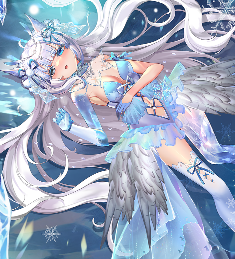 Representation of Naivety, Childhood innocence, the protection of being young and ignorant to the world's cruelties.Silvi is an immortal snowy owl girl who protects the northern forest. She lives in the hollowed out hole of a tree and looks after the forest critters. She is isolated from human society and the humans stay away from the forest she lives in, as it is said to be magical and is therefore something to be feared. One day, Silvi was patrolling the forest when she came across a human boy. She had never seen a human this close up before and spent some time observing him. As the days went on he started to look cold and was clearly lost. Silvi decided she would help the boy and the two became fast friends. As they got to know each other, Silvi gradually began to feel something for this human boy, having never experienced the company of someone other than the forest animals. They travelled together over the course of some days to the edge of the forest, where the human would be able to find his own way home. Silvi couldn't go with the boy as he was a human, and she was bound to the forest as its guardian. The two were parted, never to meet again. Silvi became so saddened by this loss that she fell asleep in her tree hollow for 600 years.This lore is told in Silvi’s first original song "Memories of First Snow"